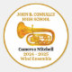 This modern custom gold high school marching band sticker features the student and band name under the tuba instrument. Customise for symphonic, wind ensemble, or concert band members or their director for a great graduation keepsake gift.