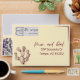 Hand-designed and hand-drawn cactus adornments with rich burgundy and soft periwinkle colours are sure to delight your guests.