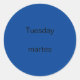 These day of the week stickers feature the word Tuesday along with the English to Spanish translation, martes. The background colour is blue, which can be customised. Thank you for shopping CherylsArt on Zazzle.