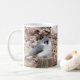 This coffee mug features a sweet little Tufted Titmouse resting on a tree stump on both sides. A nice mug for animal bird lovers. This bird image is available on several coffee and travel mug styles.