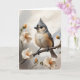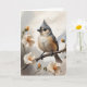 Tufted Titmouse Resting on Tree Limb Flowers Blank Card