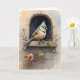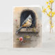 Tufted Titmouse Resting Window Sill Flowers Blank Card