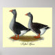 Tufted geese sport little pom poms on top of their heads. These "weeder" Toulouse do not have the heavy dewlaps of exhibition type Toulouse fowl.