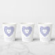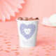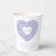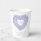 Hand-drawn botanical tulips wreath art wedding paper cups on white with blue purple and light blue shades. White tulips circling your own monogram initials. Other colours and matching items are available. © Original floral ink drawing and design by Sarah Trett for www.mylittleedenweddings.com on Zazzle.