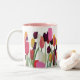 Tulip Colourful Flower Floral Tulip Two-Tone Coffee Mug designed by Nisha Prabhu. Add a splash of colour to your morning routine with our colourful tulip floral coffee mug! This vibrant two-tone design features a beautiful array of tulips that will brighten up your day with every sip. Perfect for enjoying your favourite hot beverage in style, this mug is sure to be a standout addition to your kitchenware collection. Makes a great gift for any flower lover or garden enthusiast!