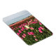 Pretty tulip field full of pink & red tulips with one white tulip standing out. Photo taken April 2017 at the Wooden Shoe Tulip Farm in Woodburn, Oregon.