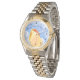 The watch is very nice, the picture is great and the watch looks like quality. The only problem I am having with it is that it is a little too large, and I also can't figure out how to open the clasp. No directions came with it. Very good. The printing is perfect and the watch keeps good time.