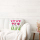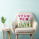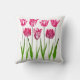 Throw pillow in a digital textile print of tulips in a watercolor gradient in shades of deep fuchsia pink and leaf green