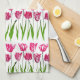 Tulip Garden Print in Fuchsia Pink and Green Tea Towel