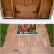 Welcome doormat featuring some beautiful red and yellow tulips in a flower garden. This was a photo I took in Springfield Missouri, United States and turned into a digital art painting which is also known as Mixed Media.
