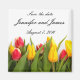 A photograph of a beautiful group of tulips is the feature of this save the date wedding magnet. The script is customisable for your names, dates, and any other wedding information you choose to put on it.