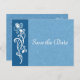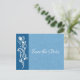 A blue panel with a white tulip accents the front of this postcard, while it also serves as a watermark for the back. Personalise it with your own information. Available in alternate colours with matching products.