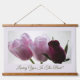 A still life photograph of a pair of pink tulips and a red rose in-front of a window. The picture is on a light pink background. Below the flowers, in a green text is, "Loving You Is The Best!" You can change this phrase. Image Copyright ©Kimberly J Tilley.
