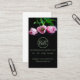 A still life photograph of fresh cut pink tulips, with long green stems, placed down on black fabric. Copyright ©Kimberly J Tilley. Customise this business card by updating the template with your information and logo.