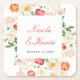 Pretty wedding paper coaster with tulips, daffodils and other flowers. Perfect for a spring or summer wedding. The words can be changed to suit your own details or requirements