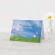 Pink tulips in grass with white daisies and sky background for Miss You friendship.