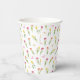 Tulips and butterflies white pattern paper cups. Design features pink, yellow and orange tulips on a white background. Pink and yellow butterflies frolic around the tulips, enhancing the joyful aesthetic with a whimsical touch!