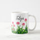 This coffee mug is shown with a lovely pink tulips print.