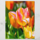 Colourful violet, purple, pink tulips on a flowerbed. Virtually all the rainbow colours present. Bright and positive floral scene. Macro photography.