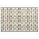 This fabric has an art deco design made from diamonds, triangles, and polygons making tulips in orange and purple with green stems and leaves.