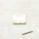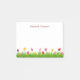 Tulip illustration of tulips in shade of pink and yellow in the green grass at the botton of the notes. Personalize with your name or message in deep pink purple font.
