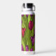 The bottle looks even better in real life. The ice cubes I put in lasts all day! I have my bottle with me all the time. It's summer and having something cold to drink feels amazing. With this bottle I always have something super cold. I have only tried the hot drink once and it lasted a long time as well. The color blue is a navy blue and the white printed on it is vibrant. It printed perfectly. I love my personalized smile water bottle.
