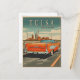 Explore the iconic Route 66 with this vibrant postcard featuring a red convertible against the backdrop of Tulsa, Oklahoma. This stylish design captures the spirit of the Mother Road. Send it to a friend or keep it as a memento of your Route 66 adventure!