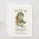 This chic bachelorette weekend invitation features a leopard and traveller's palm trees in watercolor on a light tan/beige background framed by a white border. The reverse side features an itinerary and QR code. Personalise it for your needs. You can find matching products at my store.