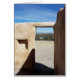 Step back into time as you walk through this doorway into the granary at Tumacacori Mission in southern Arizona. Roofless, the doorway shows us a blue sky overhead,streaked with a few light clouds. The walls are made of a light brown biscuit-coloured adobe. The shadow from the right-hand wall spreads across the lower portion of the doorway, which looks out onto a hard packed earth open area. A strip of blue sky shows at the top of the doorway, and trees from across the yard are sandwiched between sky and tan, earthy yard. This is a very quiet, peaceful place which you shouldn't miss if you visit the Tucson area. Copyright Gail Storrs 2007.
