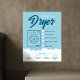 Create modern laundromat instructions wall signage using this white and blue Tumble Dryer Instructions poster design. Featuring pastel blue and white colors, dryer graphic, trendy fonts, soap bubbles motifs and a professional layout. You can edit all text, colors and even add your logo! Create custom appliance instructions for tumble dryers to display in your laundromat.