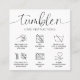 Minimalist Tumbler Care Instructions Card with black and white background, script fonts and handcrafted tumbler care icons. This editable tumbler washing guide includes the most important care information so your customers know how to care for rhinestone, personalised and decal tumblers and cups. Add your business details and logo, change the colours and make this care card your own.