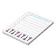 List-style to do list note pad design features an original marker illustration of a girl gymnast or tumbler in a pink and blue leotard. Just personalize with the name of your favorite dancer, gymnast, dance teacher or coach.