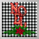 Square Holidays themed poster features NOEL in tumbling rustic marquee letters with a poinsettia swag on black and white buffalo plaid background
