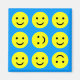 A simple minimal Pop art design of faces performing stunts with visual logic. The background colour can be customised.