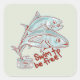 A funny cartoon illustration of tuna swimming out of a can or tina.