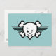 Winking, skull and crossbones with wagging tongue on an automotive retro metro emblem style wing shape line row thing. T-shirts, sweats, cards, mugs, bags, gifts.