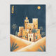 This travel postcard, in digital illustration style, is inspired by the city of Monastir, and the deserts of Tunisia.