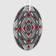 A concentric square mandala takes on the appearance of a tunnel that draws the viewer in with a combination of angled lines, triangles, and circles in shades of grey, red, and white to almost create an optical illusion.