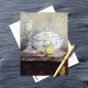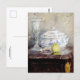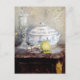 A fine art postcard with the painting titled, Tureen and Apple (1877) by French Impressionist Berthe Morisot 1841-1895). A stunning still life postcard depicting a vibrant green apple alongside a classic blue and white tureen and a glimmering crystal goblet.