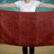 Turkestani red carpet pattern with geometric shapes : squares , rectangles , grid-like motifs .Typical Central Asian rug from the 18th century - the antique book illustration was edited and applied on this Beach Towel by Alma Wad .