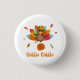 This brightfull and colorfull button features cute little turkey staying on a pumpkin and Gobble Gobble text (text is editable).