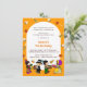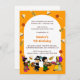 This inviting invitation is ideal for a combined birthday and Thanksgiving celebration! Its gentle orange backdrop is adorned with a cheerful gathering of children and other autumn-themed elements, crafting a cosy and welcoming ambiance.
