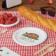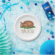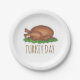 Plates feature an original illustration of a classic Thanksgiving turkey on a platter, with TURKEY DAY in a fun font. Ideal for Thanksgiving dinner! Matching napkins available.