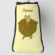 This turkey design golf club head cover is an accessory that you slide over the head of a golf club for protection against knocks whilst sitting in your golf bag. Made out of polyester, cotton, and marine vinyl with a choice of different piping colours. You can customise this golf club head cover with any text. Should you require any help with customising then contact us through the message link on this page. Turkey design golf club head cover.