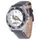 My husband loves the watch, he likes the dial, the graphics, the band, and it keeps perfect time.