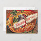 This turkey is all about surprises, jumping out of a pumpkin. This vintage Thanksgiving print depicts a turkey jumping out of a pumpkin with a feather in his mouth. Flowers on the edge of the print.
