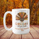 Celebrate Thanksgiving with laughter and style using this Gobble Gobble Till You Wobble Mug, featuring a cheerful patchwork turkey and playful fall colours. Personalised with your family name and year, this festive mug makes a perfect keepsake for holiday gatherings. Ideal for sipping coffee, tea, or cocoa while enjoying turkey day traditions, it’s a fun and thoughtful gift for family, friends, or holiday hosts.