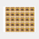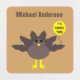 This awesome sheet of kids clothing labels features a funny cartoon of a turkey with big black eyes, a small yellow beak and tail feathers sticking up. The feet are facing in opposite directions making the turkey look clumsy. The turkey is holding a yellow balloon with a message inside that says “it’s turkey time”. This is a fun thanksgiving party design. There is custom text so you can include the name of your child.