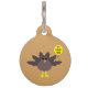 This awesome dog tag features a funny cartoon of a turkey with big black eyes, a small yellow beak and tail feathers sticking up. The feet are facing in opposite directions making the turkey look clumsy. The turkey is holding a yellow balloon with a message inside that says “it’s turkey time”. This is a fun thanksgiving party design. There is customisable text on the back for you details making sure if your dog ever gets lost it can be returned home safe and well.