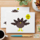 This envelope features a funny cartoon of a turkey with big black eyes, a small yellow beak and tail feathers sticking up. The feet are facing in opposite directions making the turkey look clumsy. The turkey is holding a yellow balloon with a message inside that says “it’s turkey time”. This is a fun thanksgiving party design. There is customisable text on the back so you can personalise it. There is room on the front to affix postage. This envelope will hold any A7 sized greeting card. .